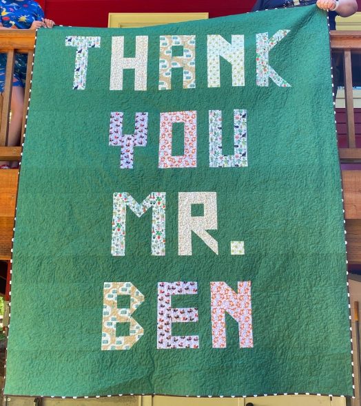 Sometimes I do still make things in a hurry, like this quilt I made for a retiring teacher at H’s school. I finished it in a couple of weeks last year.
