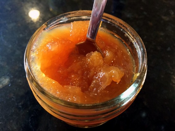 Last year in early November, with the very last remnants of my spoils from apple season, I made this fantastic jam for Thanksgiving. I gave jars of it to H’s teachers at school the day before Thanksgiving break last year (but not this year, she was out sick with an ear infection the whole week). We served it at the table for the big feast. We served the last jar of it last week for Thanksgiving, and I still forgot to take photos of the jarred goodness instead of the giant pot of hot goop.