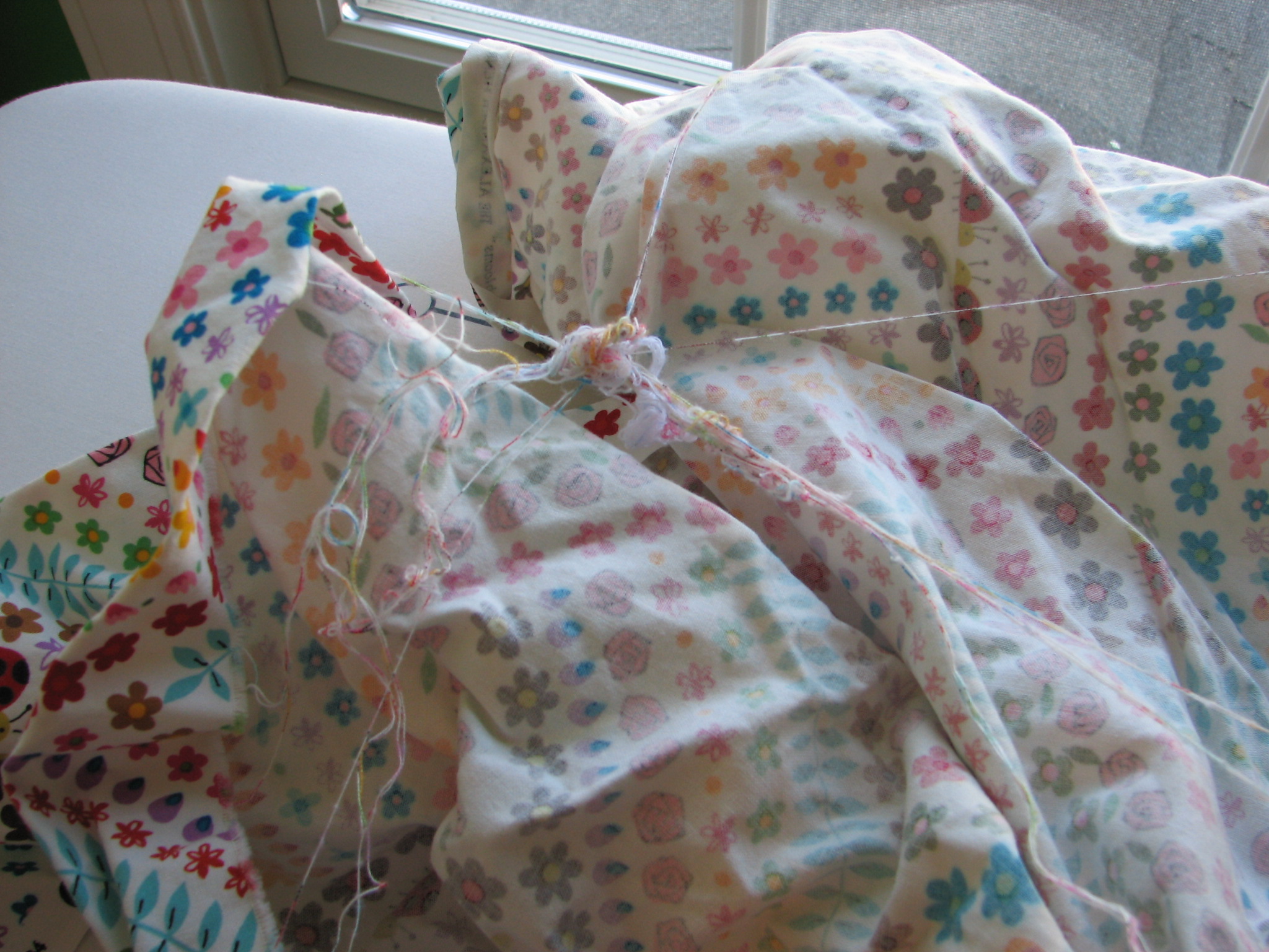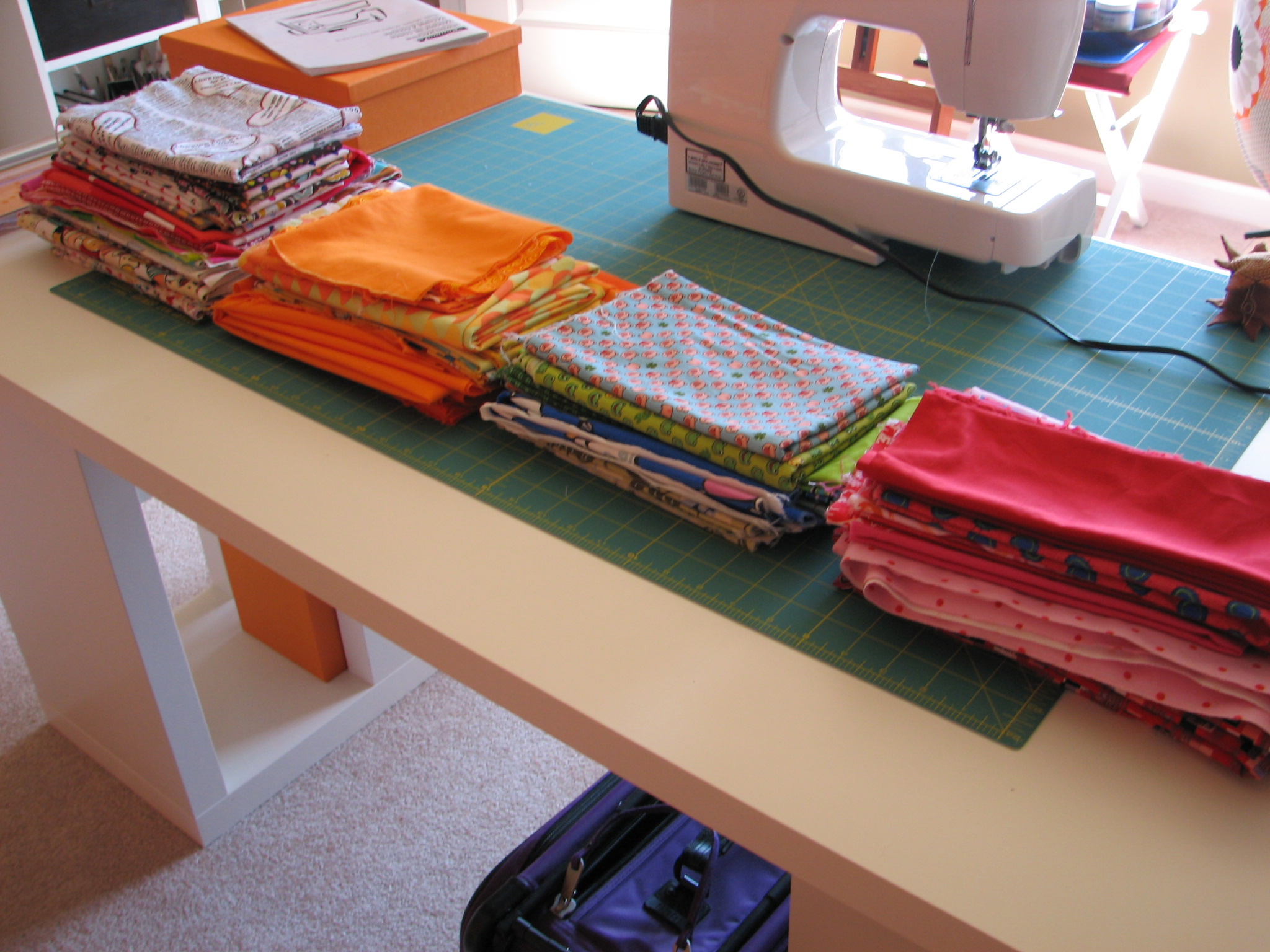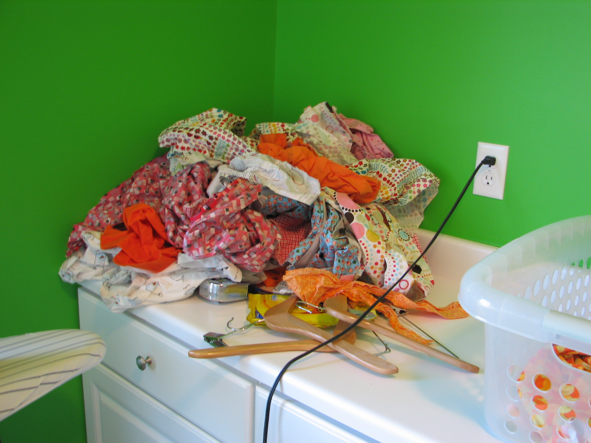 Now, this is an example of how I get into trouble by not reading directions and following patterns. This is what the pile of fabric looked like out of the dryer (actually, this is after I’d ironed about half of it):