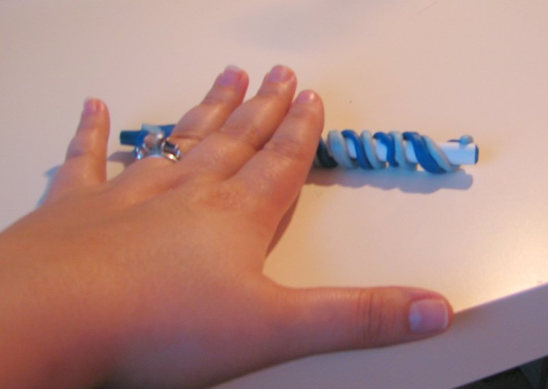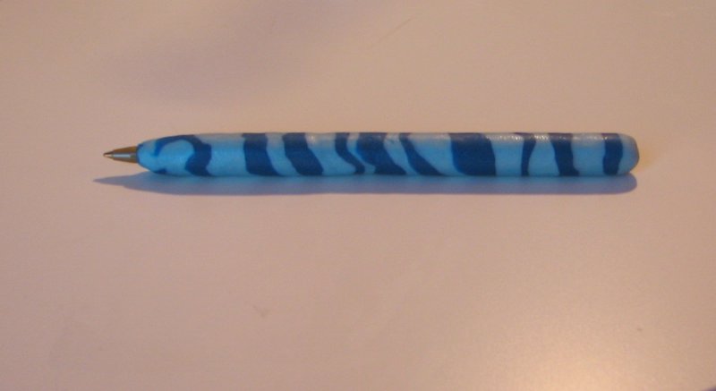 Knead the clay until it’s pretty soft and workable, then use it to cover your pen in whatever design you want. Don’t make the clay too thick, or the pens won’t bake properly.