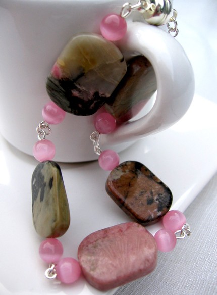 I like this Chunky Gone Pink bracelet from Lucky Libra. Handmade jewelry can sometimes look a little cheap or a little like everything else, but their stuff is funky and looks fantastic.