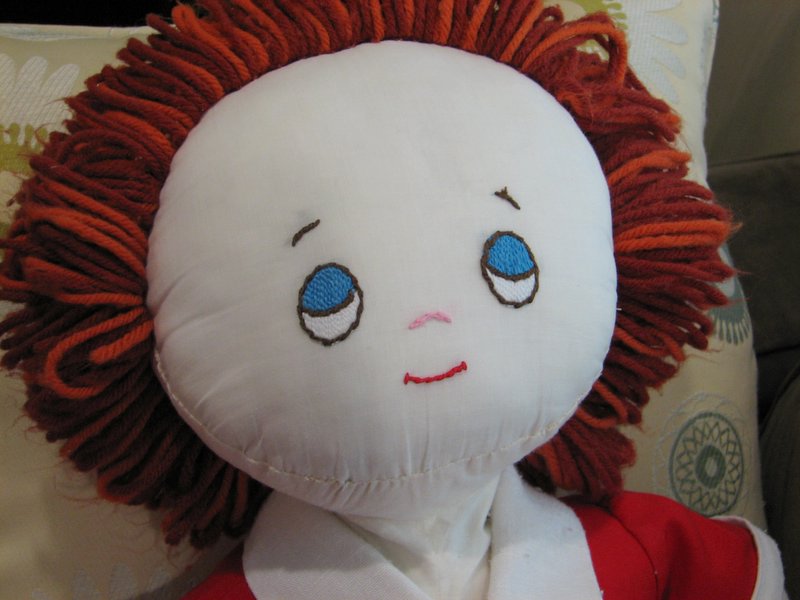 It turns out my mom has been preserving her all these years in the hope that I would want her. She’s resewn the hair, replaced torn patches, bought her new outfits (she has a sassy Gap Kids number as well), kept her clean and mended. All so maybe I’d ask for her one day, or maybe someday my daughter could have her. So Annie was delivered safely to our house on Sunday, where she will be well looked after as the cherished family heirloom that she is. She really is just so cool. And how many grown ups still have childhood dolls in such great shape?