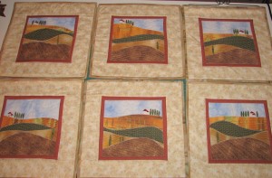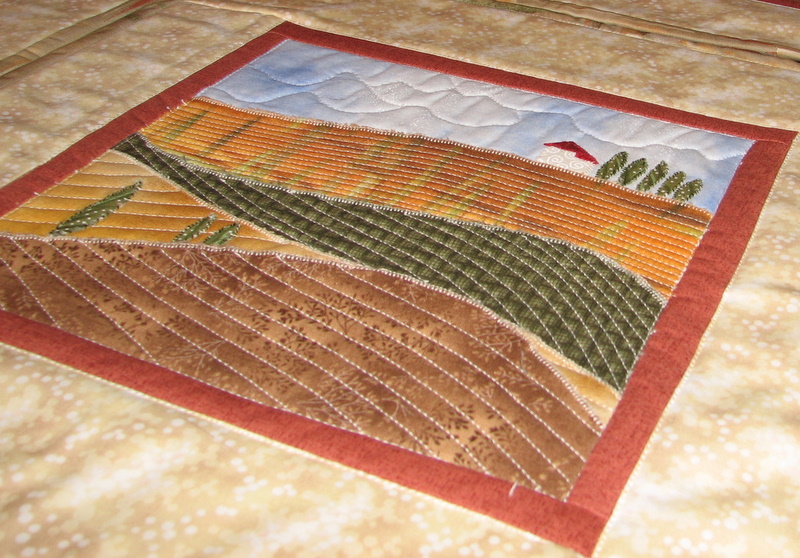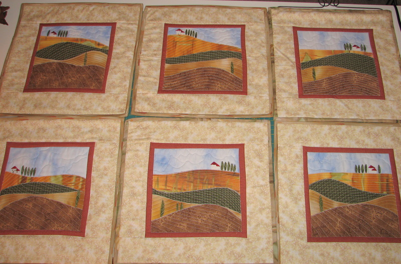 Anyway, every mat is a different Mom-improvised scene representing the hillsides of Tuscany. Two years ago I did a month-long study abroad in Florence for my graduate degree and did a short trip out to Chianti country. So now seeing these I feel like they are a pretty outstanding reminder of the experience and the landscape. Go, Mom! See what I have to live up to?