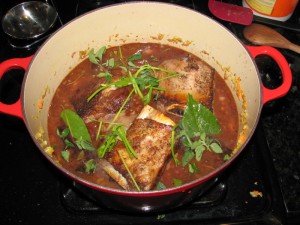 I think this dish needs tweaking, but it has a lot of promise. I’ll probably braise again, now I’m a little hooked. I got to dust off my Le Creuset, which I can never think of a reason to use. So I’ll make this again but try out a few things to get the texture and consistency just right.