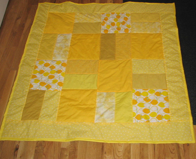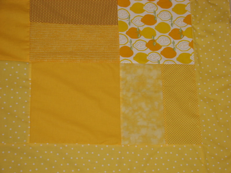 I’ll say that this blanket is for person “A.” I was looking at a totally unrelated pattern for crazy quilt blocks, and it mentioned making enough quilt blocks for various size quilts. One of the sizes it mentioned was “picnic,” and I decided that this would be the perfect, easy, gift for A. I immediately decided the top had to be yellow. No idea why, but that was the first decision I made. Before I even dug through my fabric stash, I knew this would be yellow. I guess it just seems sunny and picnic-worthy for A, so that’s what I did.