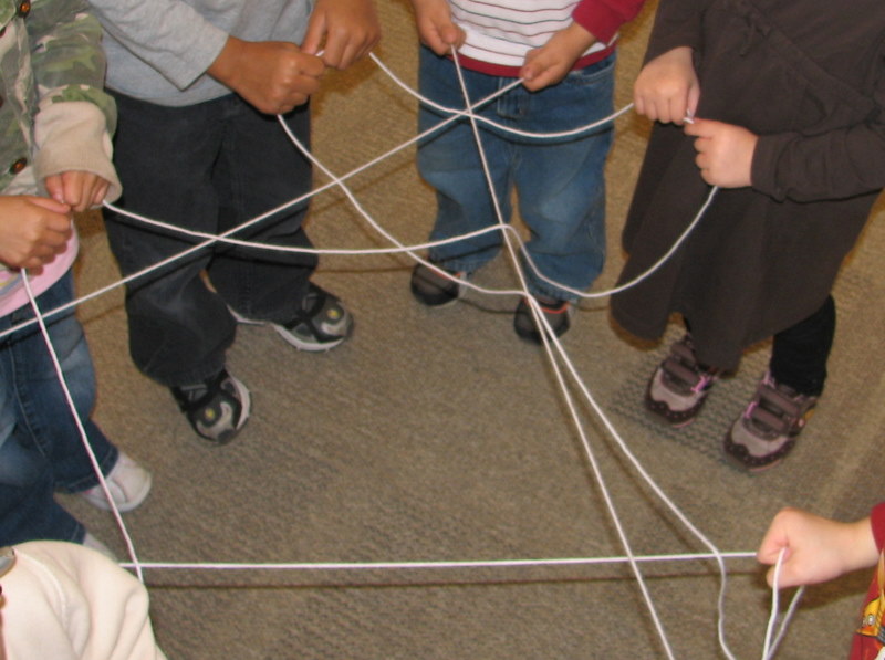 I also had the kids stand in a circle holding hands, and we spun our own spider web using yarn. We talked about how this is just what the Very Busy Spider does, and the kids really liked that. Next week we’re finishing up this month-long unit by watching an animated short of the The Very Hungry Caterpillar. I don’t think this unit would normally take a month, but we had tons of half days and days off this month.