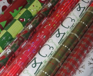 Needless to say this has caused endless teasing from Adam, who feels compelled to remind me daily that I am the only person who remembers what wrapping paper I used last year. So what if he’s right? It doesn’t make it any less important to me. I cannot officially get excited about Christmas until I have chosen The Paper. I’ve made at least 2 trips each to The Container Store and Target in search of my color scheme. And this weekend I finally made my choice: red and green. Seems obvious, right? It’s almost too obvious for me. But there are great subtleties involved in which red and green paper I chose. The red had to be bright, and the green couldn’t be too dark. Some should be foil, some should have a white background, some should have writing. Nothing too cartoony. This provides texture and, as my mother would say, “eleganza” when all those gifts are under the tree (someday I will write about all the words my family likes to make up).