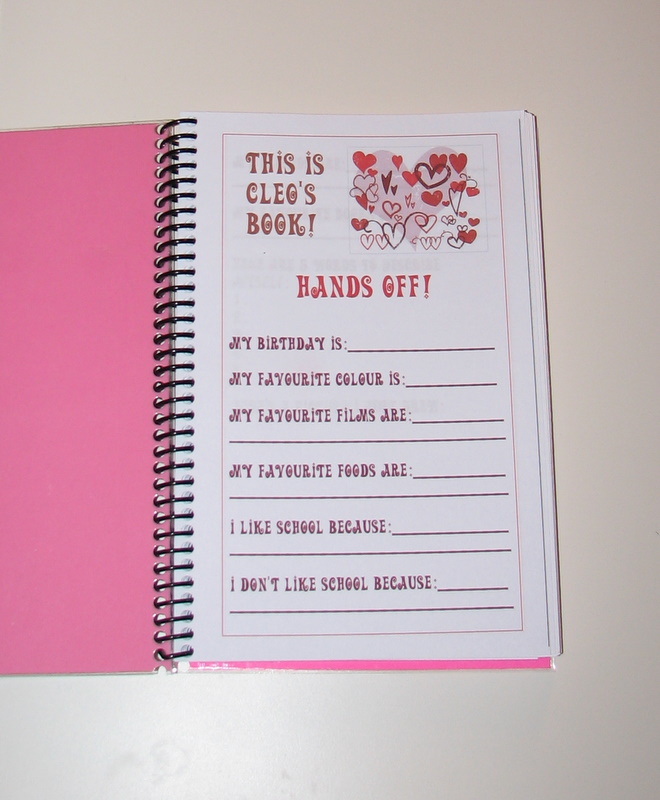 So I designed her this 5 1/2″ x 8 1/2″ diary (half the size of regular printer paper) basically in Word. I went to Staples and had the front and back covers laminated and the whole thing spiral bound. I made it in one evening, and the trip to Staples cost about $6. Coolest and most affordable present I’ve ever tried, I think (the scrapbook paper was $20 if you want to throw that in, too, but wrapping paper would also have worked). Now both of the London nieces are taken care of with presents.