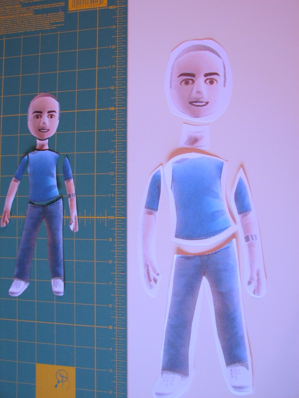Adam and his brother Morgan are rather obsessed with all things Xbox. And now with the release of the New Xbox Experience you can create your own little avatar (and they are more detailed than the Wii Miis). So I thought, “Wouldn’t it be cool if I made Morgan a doll based on his avatar?” Then I said it out loud to Adam, and it became my next project.