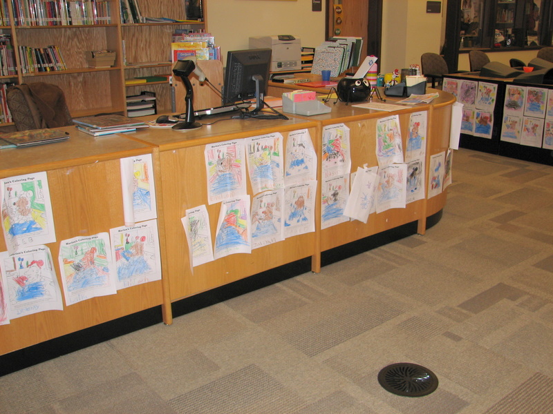This is what my circulation desk gallery looked like by the end of the day Friday. Like it had been through a hurricane or war or something. This is after a week of hyper, Santa-crazed kids had been in and out.