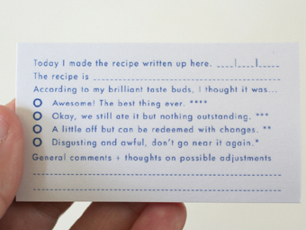 I bought a bunch of these Post-It recipe review pads from The Small Object. I love them, and I’ve been sticking them in with aprons I’m making and giving as gifts this year. Plus I kept a couple for myself.
