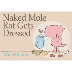 Last week saw the release of Mo Willems’s latest picture book, Naked Mole Rat Gets Dressed. Wilbur isn’t like all the other naked mole rats. He loves clothes and outfits. He lives to get dressed; he thinks a lot about what kind of outfits to where. The other naked mole rats hate this. They’re naked and they love it! What Wilbur does is just plain weird. So Wilbur is teased and bullied until the other naked mole rats complain to the wisest of them all. This supreme naked mole rat decides that getting dressed is actually pretty swell, and he encourages all the naked mole rats to do their own thing.