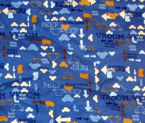 My baby cousin, India, is having a baby next month. She’s 22, so I can’t really call her my baby cousin anymore. But I remember that she was the first baby I ever held, when I was 7-going-on-8. So I wanted to make her a fun blanket for the baby boy she’s expecting. Her shower isn’t until the end of February, but this is already made and ready to go. It’s just like Alannah’s Blanket, Yvonne’s Blanket, and the Little Red Riding Hood Blanket, but I’ve been playing with the original quilt design from Last-Minute Patchwork + Quilted Gifts. I tried to follow the lines of the car fabric with this one, and the next one I make I’ll play with different quilting altogether. The blanket itself is a really basic idea, so I’ll try playing with pattern and stitching to make them fun.