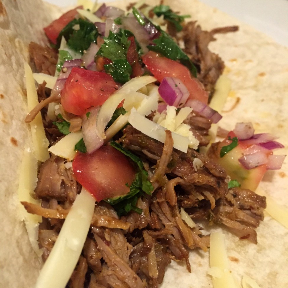 7. Serve the shredded pork in tortillas, along with the toppings.