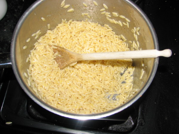 Cook the pasta in a pot of boiling, salted water until al dente (I followed the box directions for the orzo).