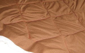 The real problem is the back of this runner. The front seams quilted really nicely with the walking foot, but I could not keep the backing straight. So now it looks jumpled and sewn over at a lot of the seams. I’m sure this is because when I started quilting this the first time I removed the basting pins as I was going along. I tried to re-pin it, but I got a little lazy. And even pinned, I don’t know that my sandwiching skills are good enough yet to keep the back smooth when I can’t even see it. I quilted from the middle out because I thought that would help fix the problem I had the first time. Maybe that’s not the right way to do this. Or maybe I’ll just stop using such lofty batting.