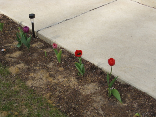 And our tulips are up and looking awesome. So pretty, I can’t believe how well they’re doing.