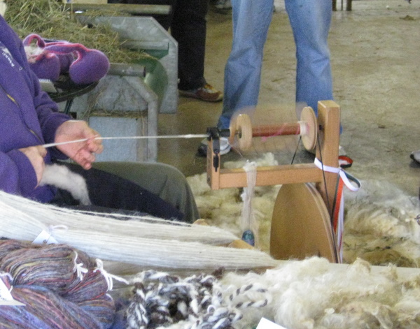 So the lady spinning yarn had lots for show and tell, but nothing for sale. She made all the yarns on her table, and watching her spin the raw, just-sheared wool was very cool. And I learned something I never knew. Fishermen’s sweaters are made from wool that has just been soaked in cold water and hung to dry outside before being spun into yarn. It’s not thoroughly cleaned because the oils need to stay in it. They’re water resistent and help protect the fishermen. Cool, right?