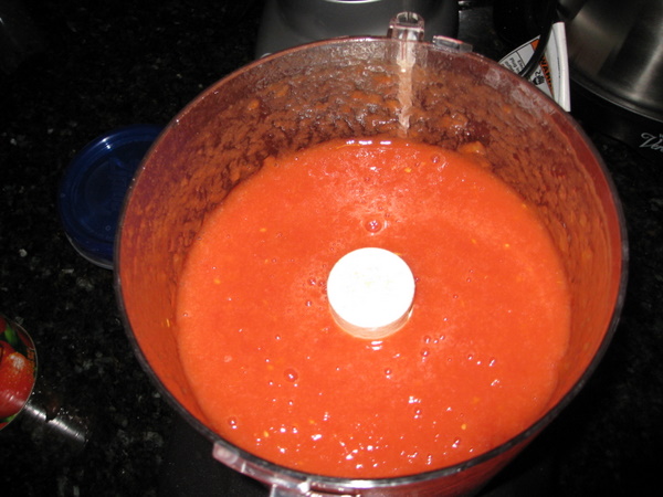 Pulse the tomatoes with their juice in a food processor until coarsely ground and no large pieces remain, about 12 pulses.