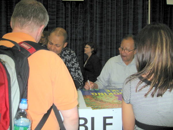 I also met the incomparable Walter Dean Myers and his son Christopher, who have collaborated on several books including the upcoming picture book Looking Like Me. I got a signed poster and met the legend and son.