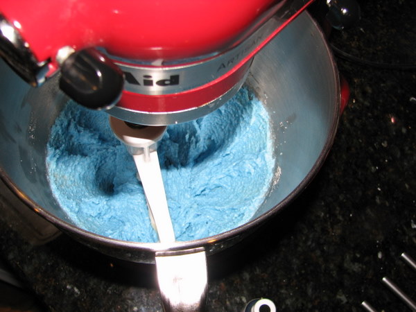 So far I’ve just tried the cookies. And I decided to try dyeing those as well to see what I could get. I used Martha Stewart’s Ideal Sugar Cookies recipe, which was absolutely delicious. I was going for navy blue, but this was as close as I could get.