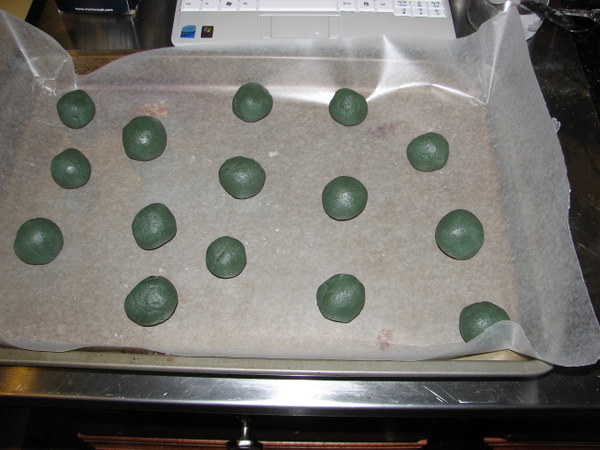 Delicious, alien-colored, non-balls. Next experiment will be better. I may try playing with shortbread for shapes.