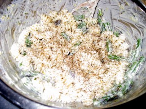 Pasta with Goat Cheese, Lemon, and Asparagus (adapted from June ’09 Bon Appetit)