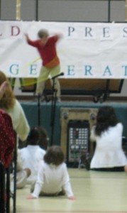 One little first grade girl was supposed to do a gymnastics routine, but she got so terrified up on stage that she couldn’t go on. Poor thing, she tried her best. And then there was the collection of great kids being kids doing kid dancing and singing.