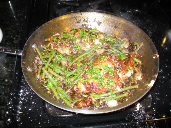 A burned and bitter version of Chicken with Haricot Verts and Lemon Butter from the June 2009 Bon Appetit.