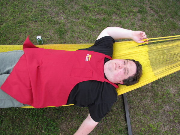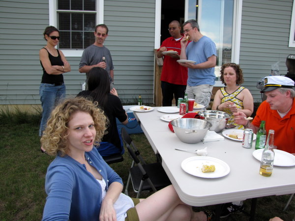 It was a great day, and all the food was good. I’ve been going on and on about this dessert table for ages now, but really Adam made the cookout great. He is really a great griller, the hot dogs and burgers were perfect. He grilled anything he was handed (and some of our guests brought all kinds of exciting things to grill), and it all came out delicious. It wouldn’t have been a cookout without him out there in his In ‘n Out Burger apron.