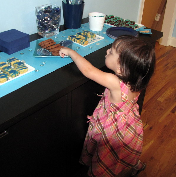 My niece Grace was a fan of the dessert table. She would take something, lick the chocolate on top, and hand it to my brother or my mom. And move on to something else to lick.
