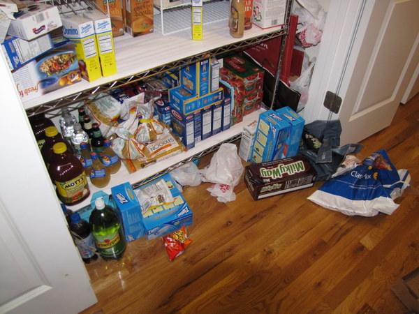 I have this giant list of summer To Dos. These are all the projects I’ve wanted to do for ages, but I haven’t had the time. Today was the first day of summer break that didn’t involve party planning, and I jumped into this list feet first. I organized the garage, the coat closet, and the pantry. I also painted over some patched holes in one of the bedrooms, and I sorted a big pile of mail. Now I’m completely exhausted, so here are some before and after pics of the pantry to ooh and aah at.