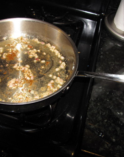 Heat remaining oil in skillet. Add shallot and cook until softened, about 1 minute.