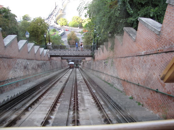 See that vertical train making it’s way up this track? That’s how you climb the hill that leads to the castle. It looks crazy from inside the train, too.