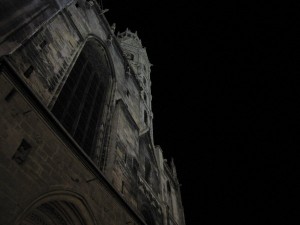And then I napped until dinnertime. We ate Wiener Schnitzel and braised pork at Greichenbeisl, a very Austrian restaurant that’s been around for more than 500 years. So they definitely know how to make Wiener Schnitzel by now. We strolled back to the hotel, and I snapped a photo of St. Stephan’s church.