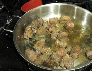 1.5 pounds sirloing steak tips, cut into 2″ chunks (I used 3/4 lbs. of sirloin steak and cubed it myself)
