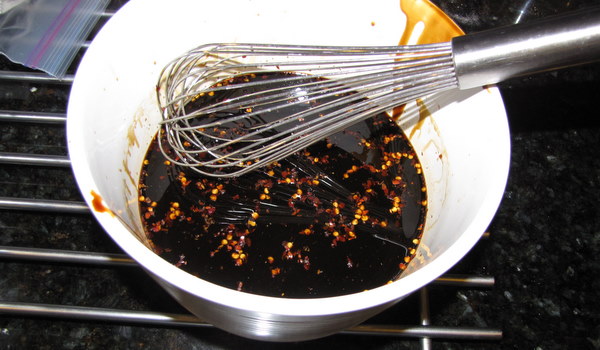 Whisk molasses, vinegar, pepper flakes, and 1/4 tsp salt in medium bowl.