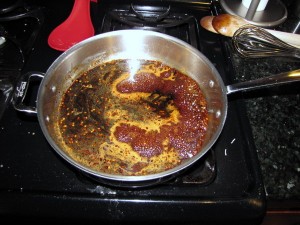 Add molasses mixture and any accumulated meat juices to the empty skillet and simmer, scraping up any brown bits with a wood spoon, until slightly thickened (3-5 minutes).