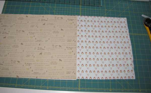 The outer fabric is on the left, a cotton linen blend by Lecien called French Antique Sucre Japanese fabric on parchment (according to Lucky Kaeru Fabric, where I bought it). I needed a yard but only had half a yard, so my outer bottom pieces are 5 1/4″ wide instead of 6 1/2″ wide. My straps will also be different. But I really wanted to use this fabric, so I was happy to improvise.