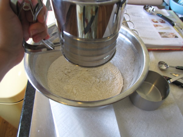 Whisk (or in my case, sift) the flour, baking powder, and salt together in a large bowl.