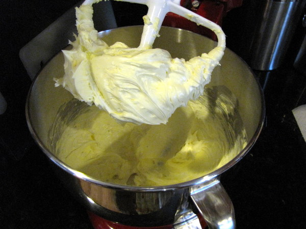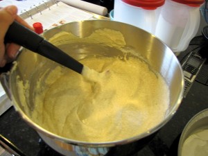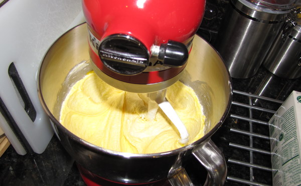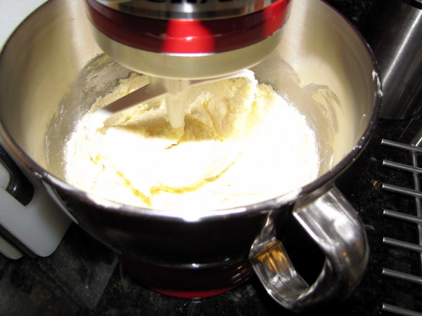 Beat in the eggs one at a time until incorporated, scraping down the bowl as needed. Beat in the vanilla. **NOTE: To get the eggs room temperature quickly, the book suggests putting them in a bowl with hot tap water for 10 minutes. This worked perfectly for me.