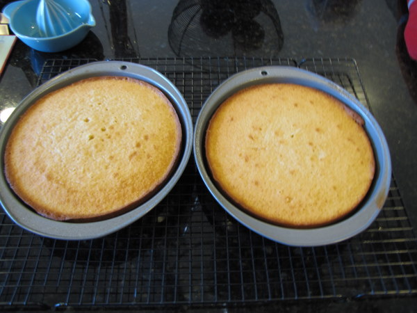 Let the cakes cool in the pans on a wire rack for 10 minutes. Then flip the cakes out of the pans and leave them to cool upright on the wire rack for 1-2 hours before frosting.