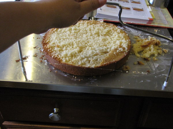 I bough this great tool for cutting the “dome” off layer cakes so they’re level and easy to frost evenly.