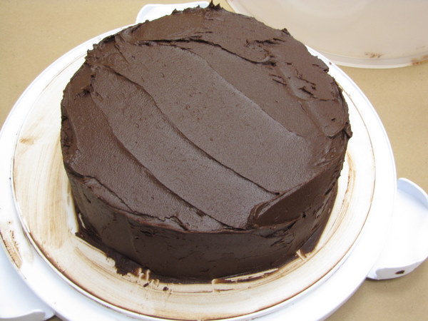 I got kind of swept up in the fun of frosting a cake without all the fuss I’m used to, and I forgot to take photos as I went. But here it is, all frosted.