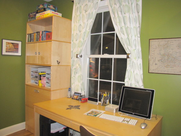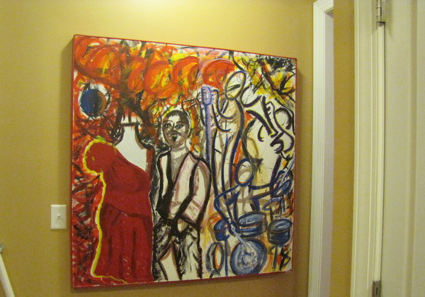 Rehanging one of my college paintings (it used to be in the library, now Adam’s Here & There prints of Manhattan are in its old spot.