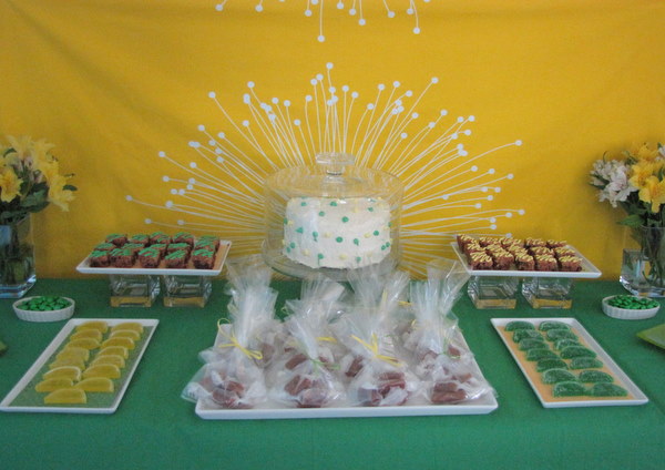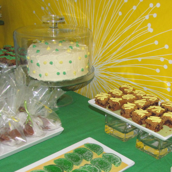The August dessert table. I’m really thrilled with this one, I made devil’s food cake with vanilla buttercream (with polka dots that my niece Grace helped me put on), chocolate chip cookie bars, and homemade salted caramels (my 2nd attempt). Those were perfect, I’ve figured out the tricks. Everything was delicious, and I love the colors. W00t!