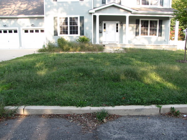 The ones with the wild lawn and the jungle for a flowerbed. This is because a) I’ve learned that I really dislike gardening; b) somehow tons of grass seed got into the flowerbed and really took to all that soil TLC we did in the spring; and c) it takes Adam a really long time to mow the whole lawn with his pusher mower. One of our friendly neighbors with a rider mower had been doing our lawn and that of the senior citizen next door (this makes our yard self esteem so much higher), but his mower broke.