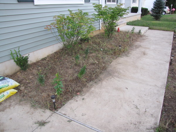 It looks like scorched earth out there, and you would not believe the exodus of creepy crawlies, but it was all worth it to be able to see the front of the house again. And the gnome! We sprayed the remaining bits of weed and grass, and we’ll lay some soil and mulch on top of this bed to keep new weeds from growing. Amazingly, all the bulbs and shrubs we planted survived the imprisonment and are still green.