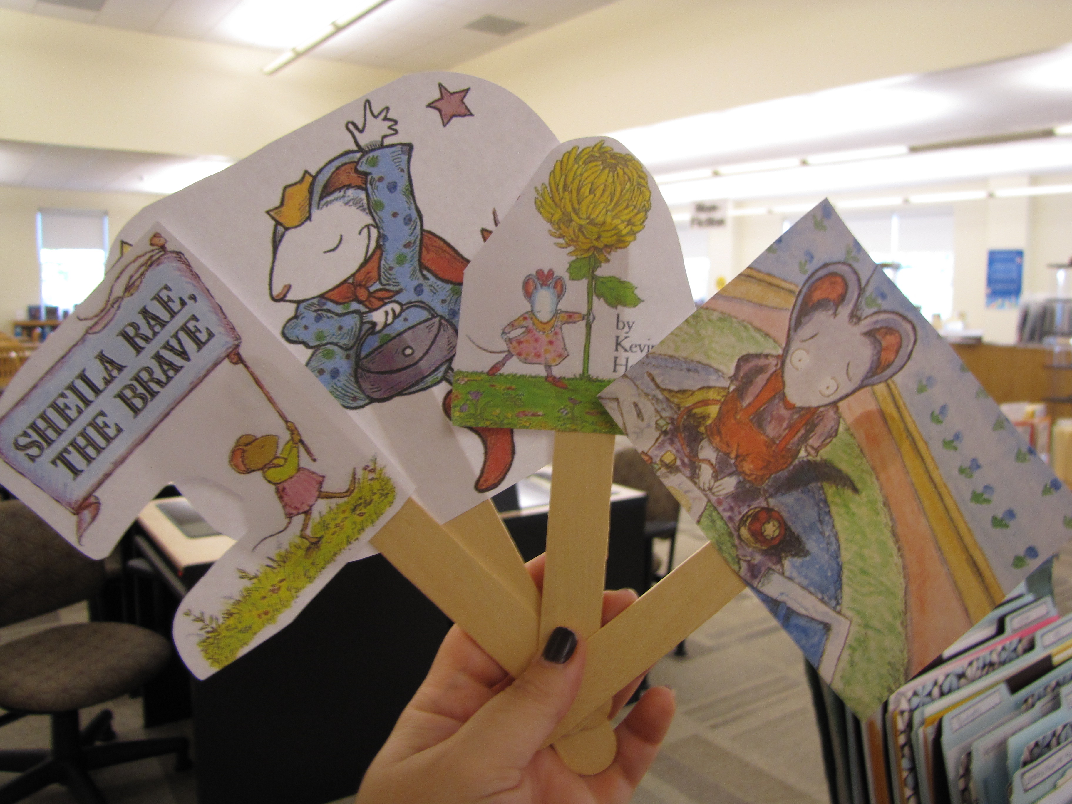 I made these popsicle pictures of each mouse to play a memory game with pre-k to see what details they could remember from each book. They did a great job.