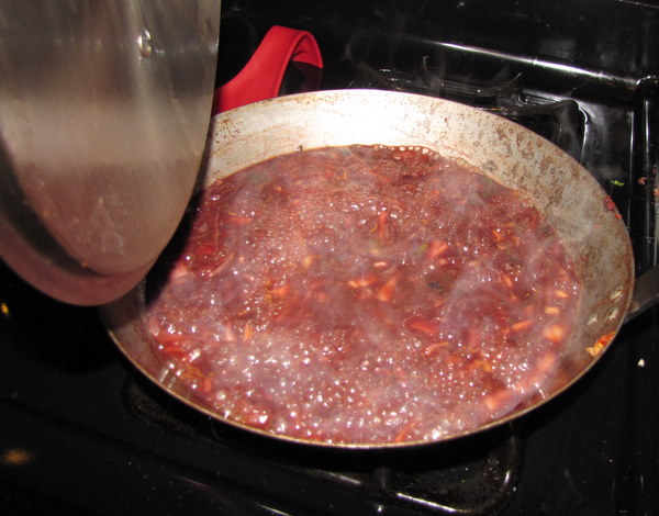 This was also weird because you can use red OR white wine, and I used the leftover red wine from book club. But it made my dish look completely different from the one on Food Network, so they must have used white.
